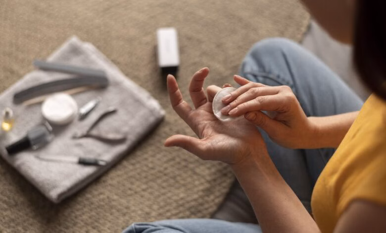 - Apsaugokite odą aplink nagus: Pirštų odeles ir odą aplink kiekvieną nagą gausiai patepkite vazelinu ar riebiu kremu. Tai sukurs apsauginį barjerą ir neleis agresyviam acetonui stipriai išsausinti ar sudirginti odos.