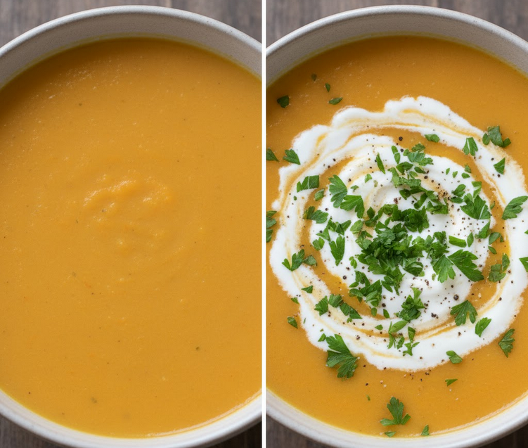 Įvyko stebuklas. Sriuba netapo rūgšti. Sriuba tapo… labiau morkinė. Samin rašo, kad actas suveikė lyg prizmė, atskleisdama visus paslėptus skonius – morkų saldumą, sviesto sodrumą, svogūnų žemiškumą.
